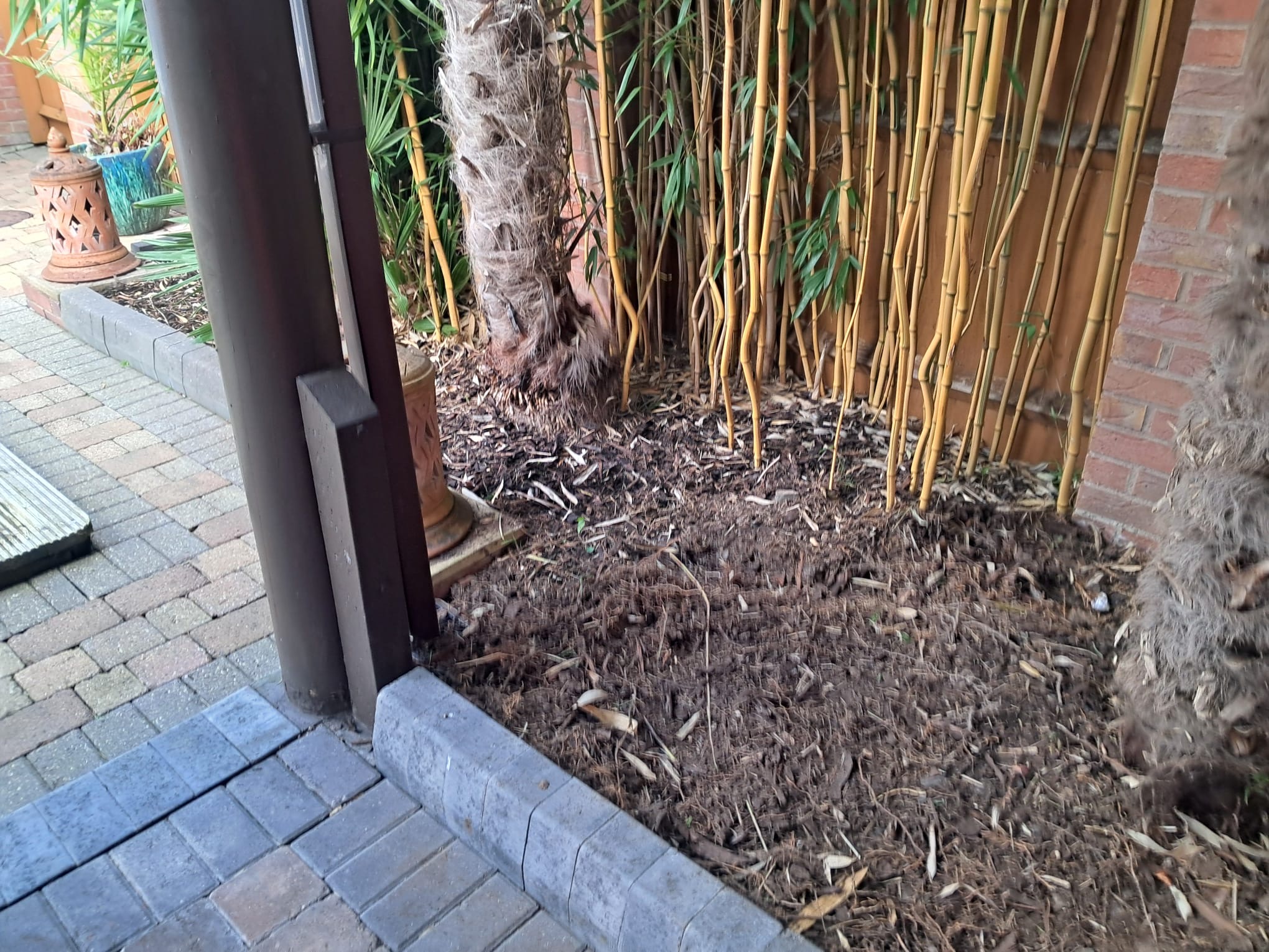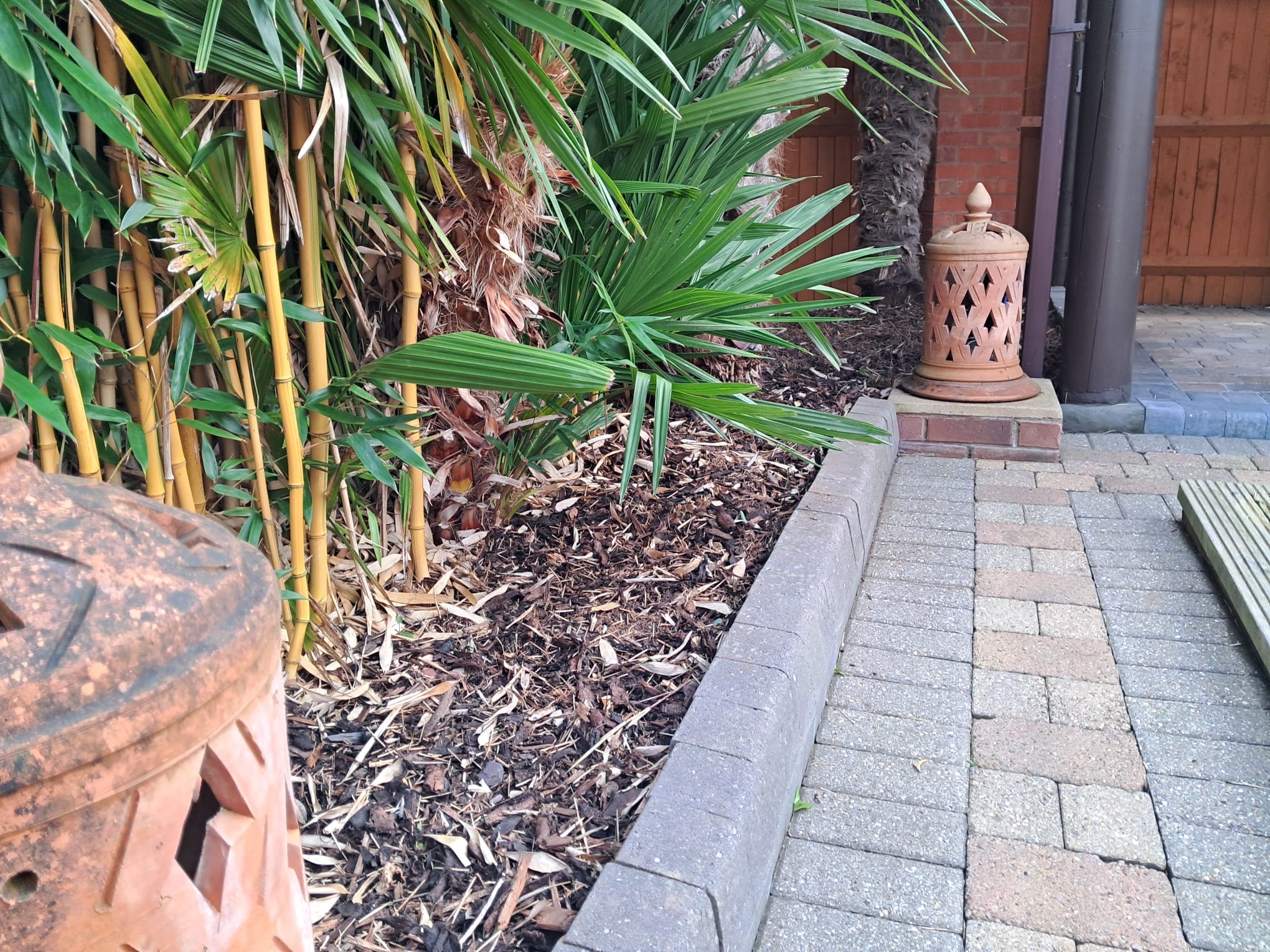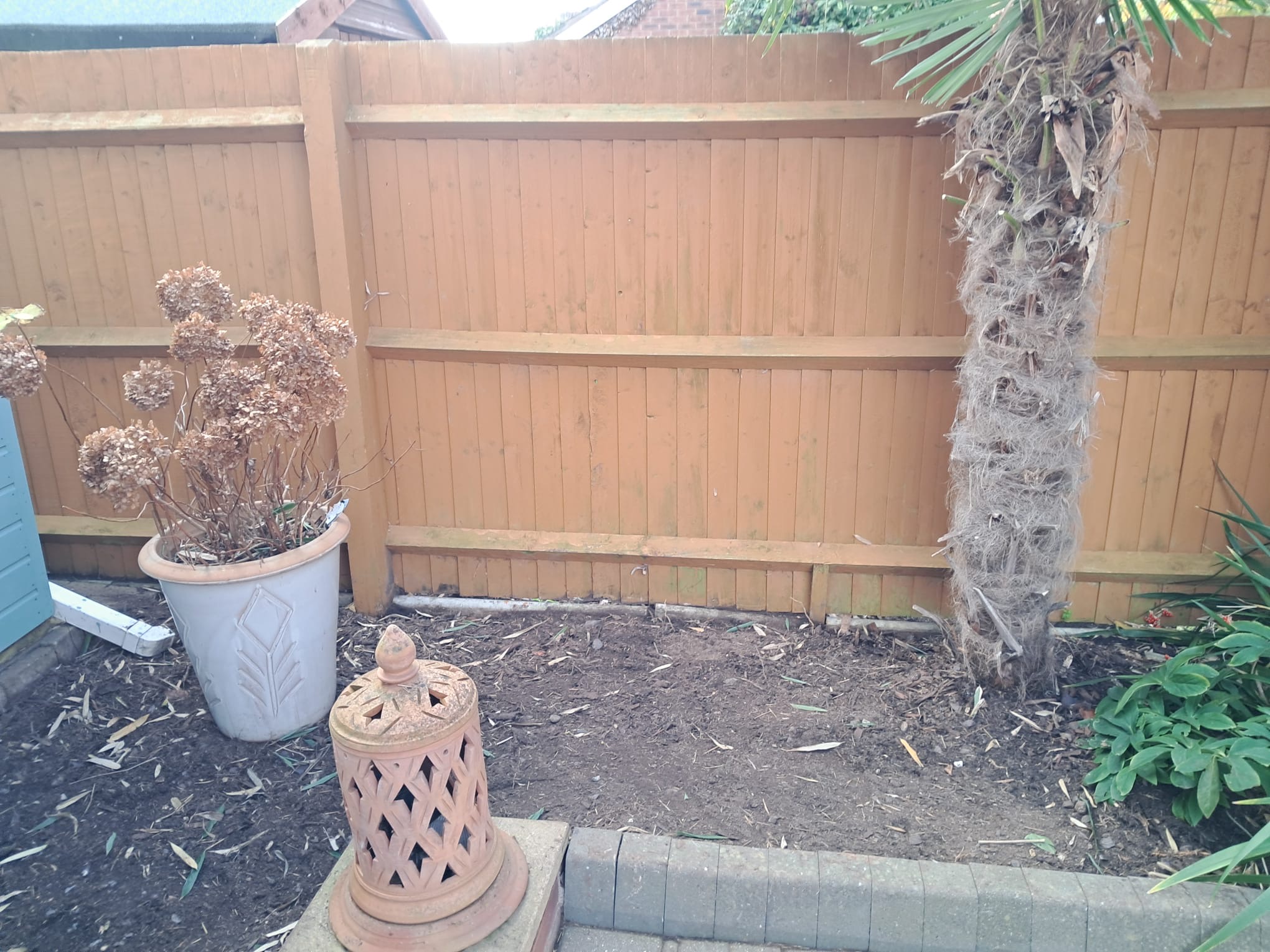 We carefully removed the stalks and the underlying rhizomes to ensure the homeowner now has a clear space ready for fresh landscaping.