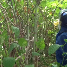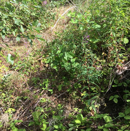I thought after viewing the area that maybe the area would benefit from a spray or injection once a year as the zone will prove very difficult to eliminate completely due to the size of the infestation. However, if the client choses to excavate the infestation, it will prove hard to irradiate.