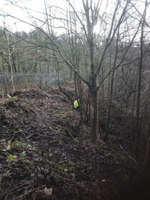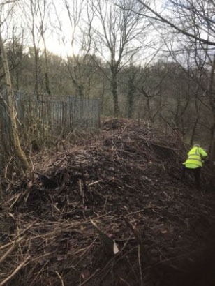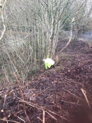 On my return in February 2018, myself and another technician P. Lennon cleared all dead canes and debris to allow for a clear space for the 2018 growing season. We applied no herbicide on our visit in February. Due to the steepness of the bank on which we were working on, the task required 2 technicians because of the dangerous nature of the drop. The whole area was cleared of dead canes. I advised the next visit will require a treatment at the start of the growing season 2018 and a visit for a second treatment at the end of growing season 2018.