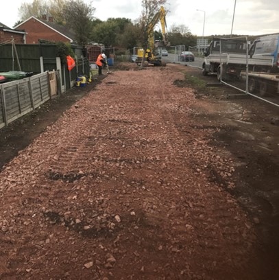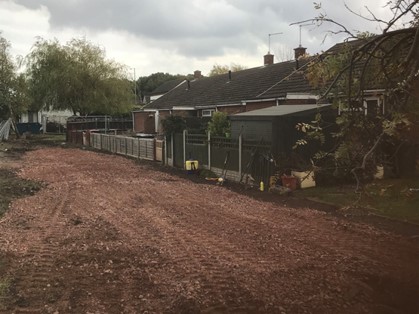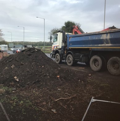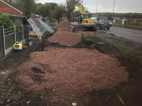 The harass fencing, skip and 8t plant an operative arrived at 8:30am on 31st October and 1st November ready for works to commence at 9am. Approximately 72 tonnes of contaminated soils were removed from site and approx. 120 tones of type 1 stone was backfilled into the hole covering 14x4sqm. The excavation took two days to complete and is now ready for the fencing contractors to attend and erect the new fence as scheduled.