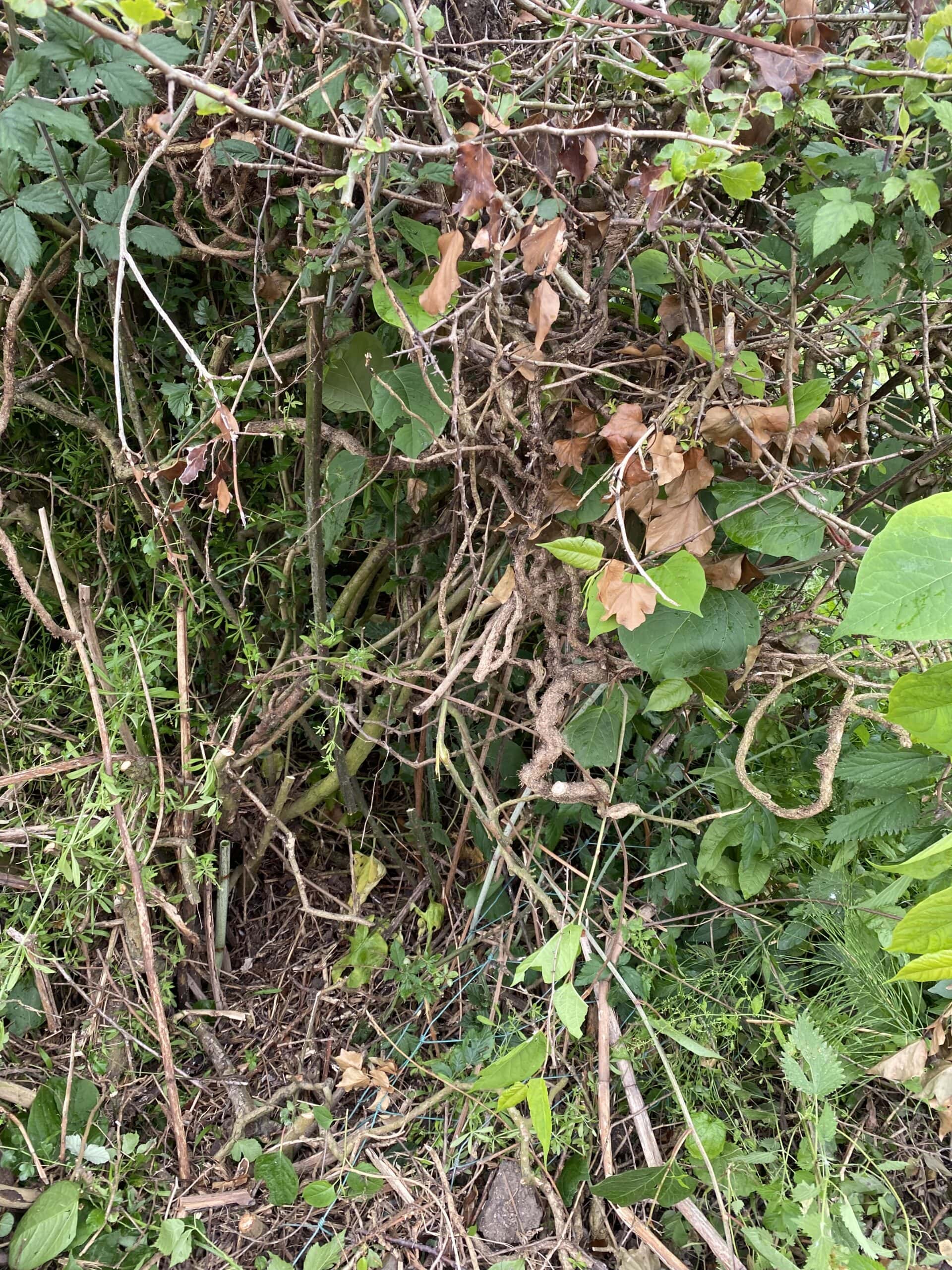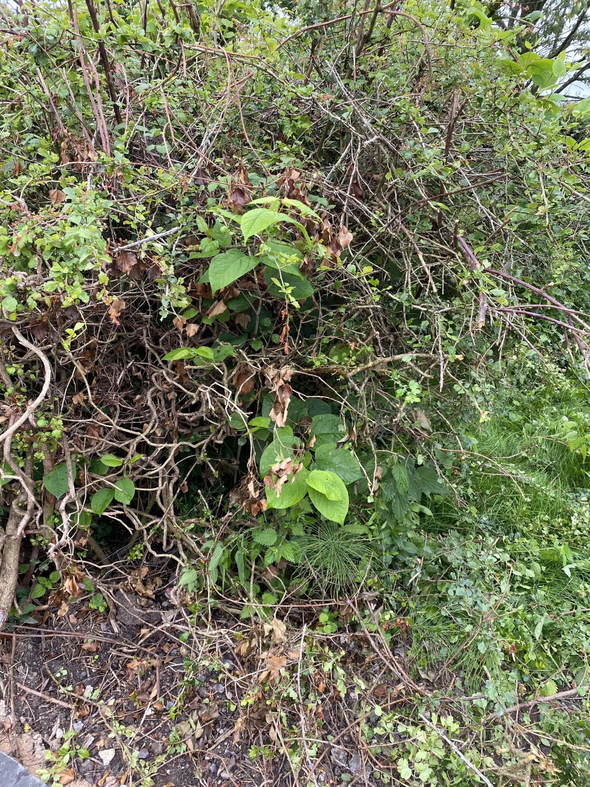 During our site survey, we confirmed that Japanese Knotweed was present within the established overgrown hedgerow and also a very small amount of growth in a grassed area by the hedgerow. Our technician recommended two options to our client: