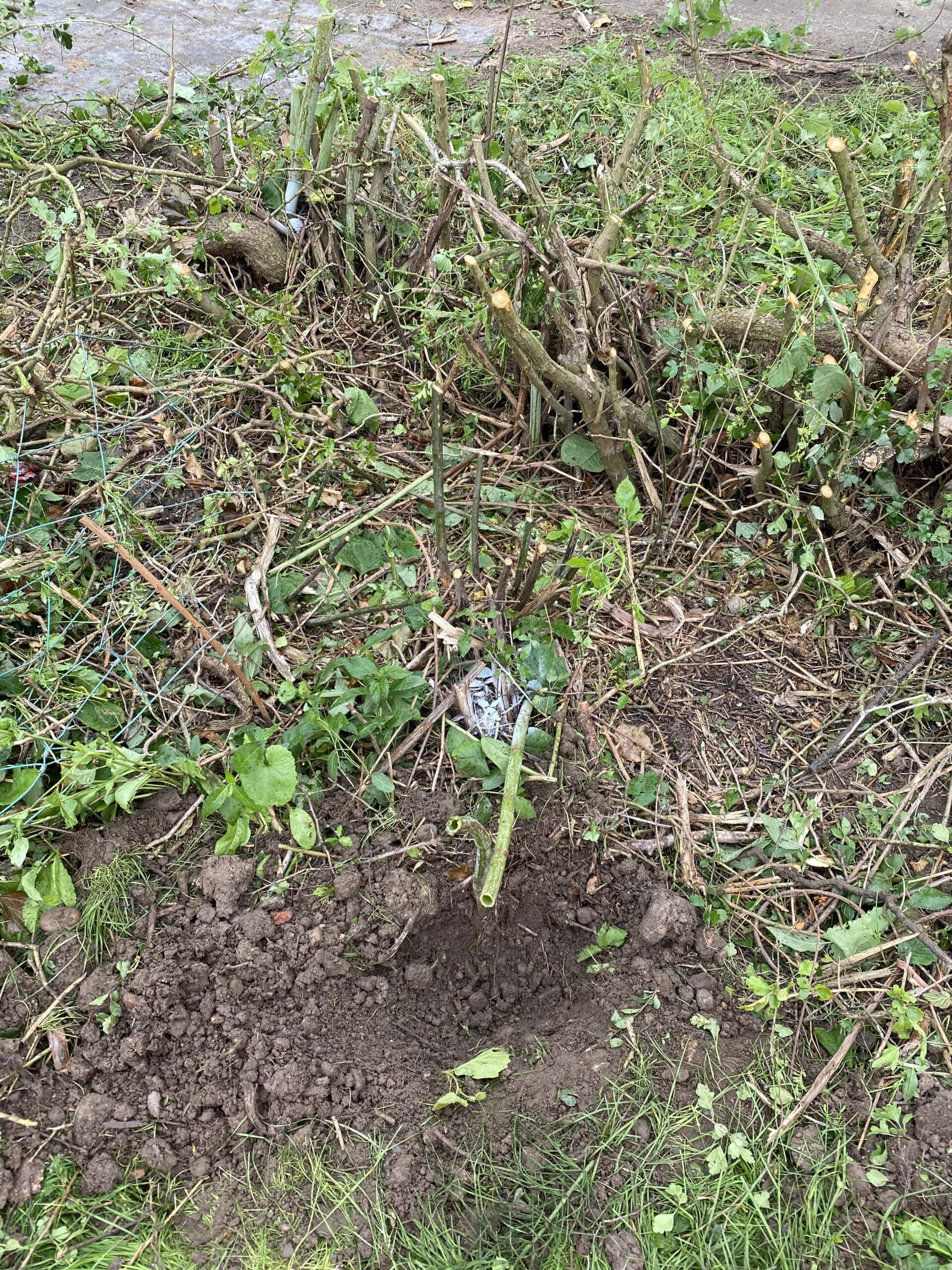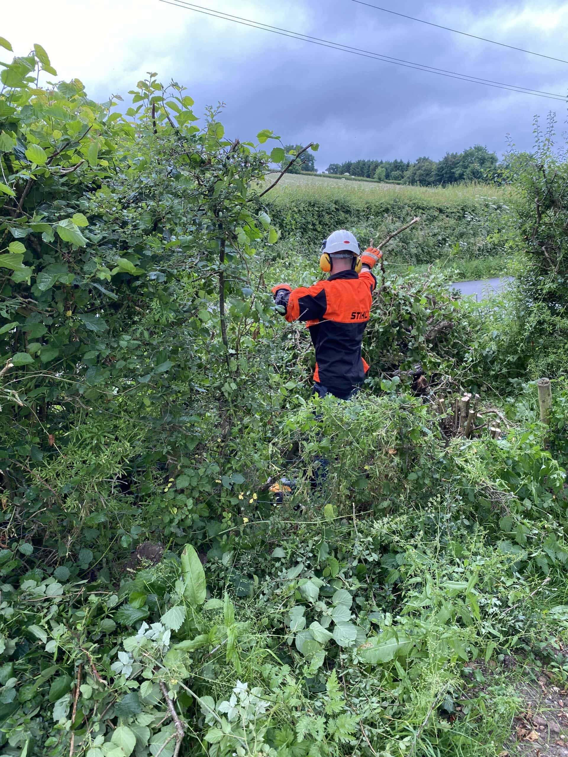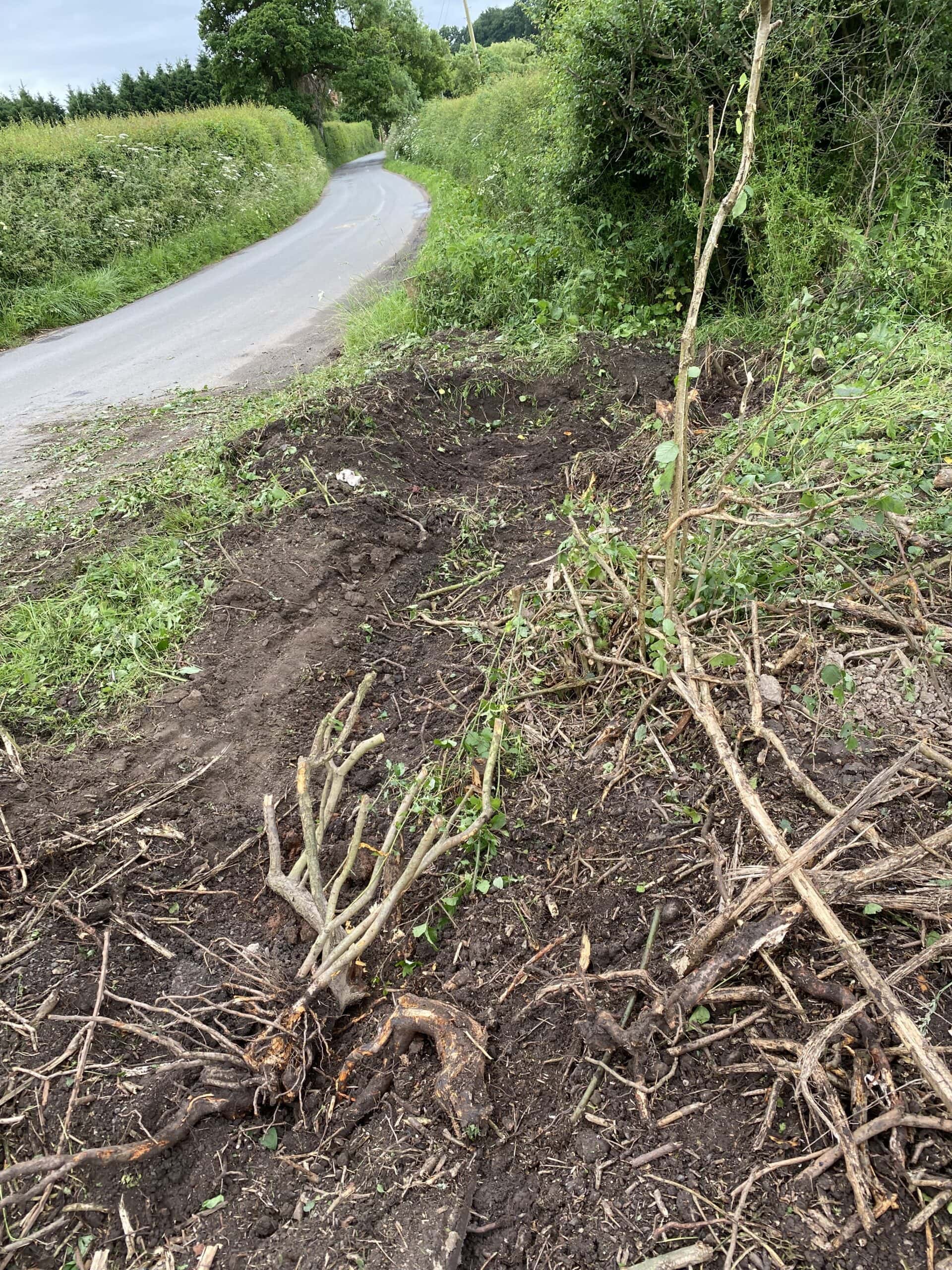 The hedgerow would be carefully removed around the knotweed and placed on the land for burning under a D7 exemption (burning waste in the open) from the Environment Agency.