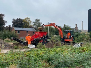 The screening process removes the Japanese knotweed material from the soil and separates the subsequent arisings into two piles; one contaminated Japanese knotweed for incineration and one low-risk soil.