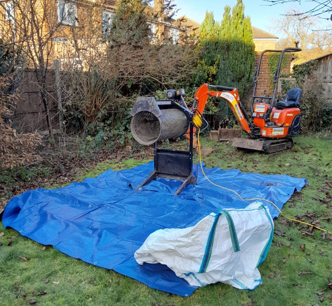 Japanese Knotweed Screening – All Japanese Knotweed soils were excavated and stockpiled next to the screener area for screening using a 3 way screener to remove Japanese Knotweed from the soils.